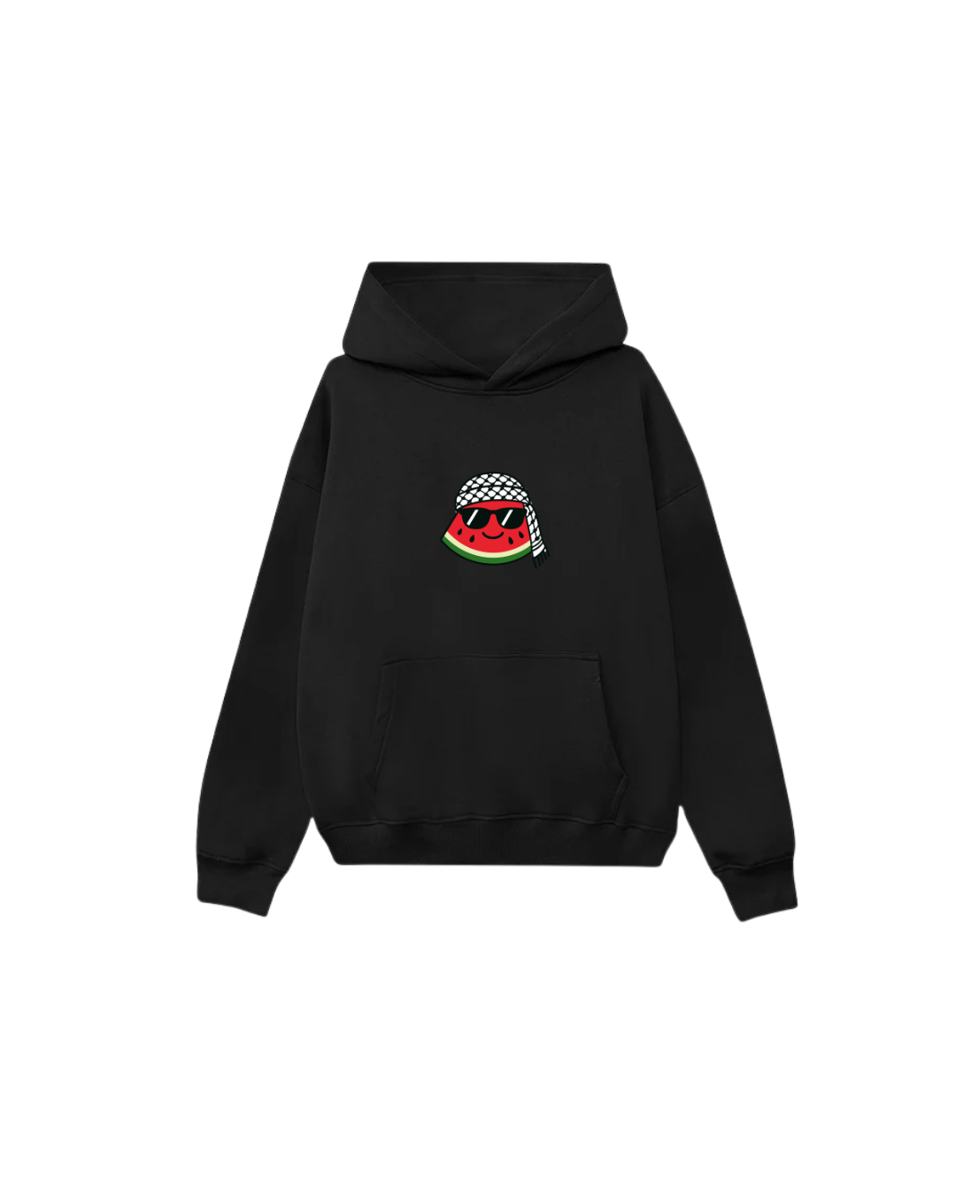 A playful twist on Palestinian symbolism — a watermelon rocking a kufiya and sunglasses. Bold, fun, and full of attitude. Wear it for the culture… and the vibe.